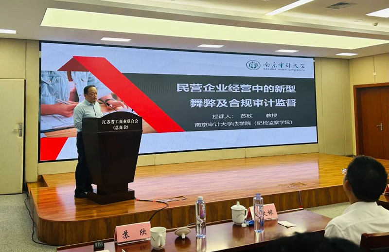 本次培训活动以清廉民企建设为核心议题,邀请了“省工商联企业治理现代化咨询委员会”两位专家——北京大成(南京)律师事务所的薛火根律师与南京审计大学法学院的苏欣教授进行授课。薛火根律师以“新形势下民营企业如何加强清廉合规建设”为主题,深入剖析了民营经济促进法与监察法实施对企业合规管理的指导意义,并结合一系列典型案例,详细阐释了企业内部与外部合规建设的核心要点,为企业构建清廉合规体系提供了切实可行的操作指南。苏欣教授则针对民营企业经营中面临的新型舞弊问题,提出了创新的合规审计监督思路,系统梳理了隐性舞弊的多元形态与演化特征,通过深入剖析典型案例,揭示了合规审计的技术路径与创新机制,为企业完善风险防控体系提供了宝贵的专业智慧。
