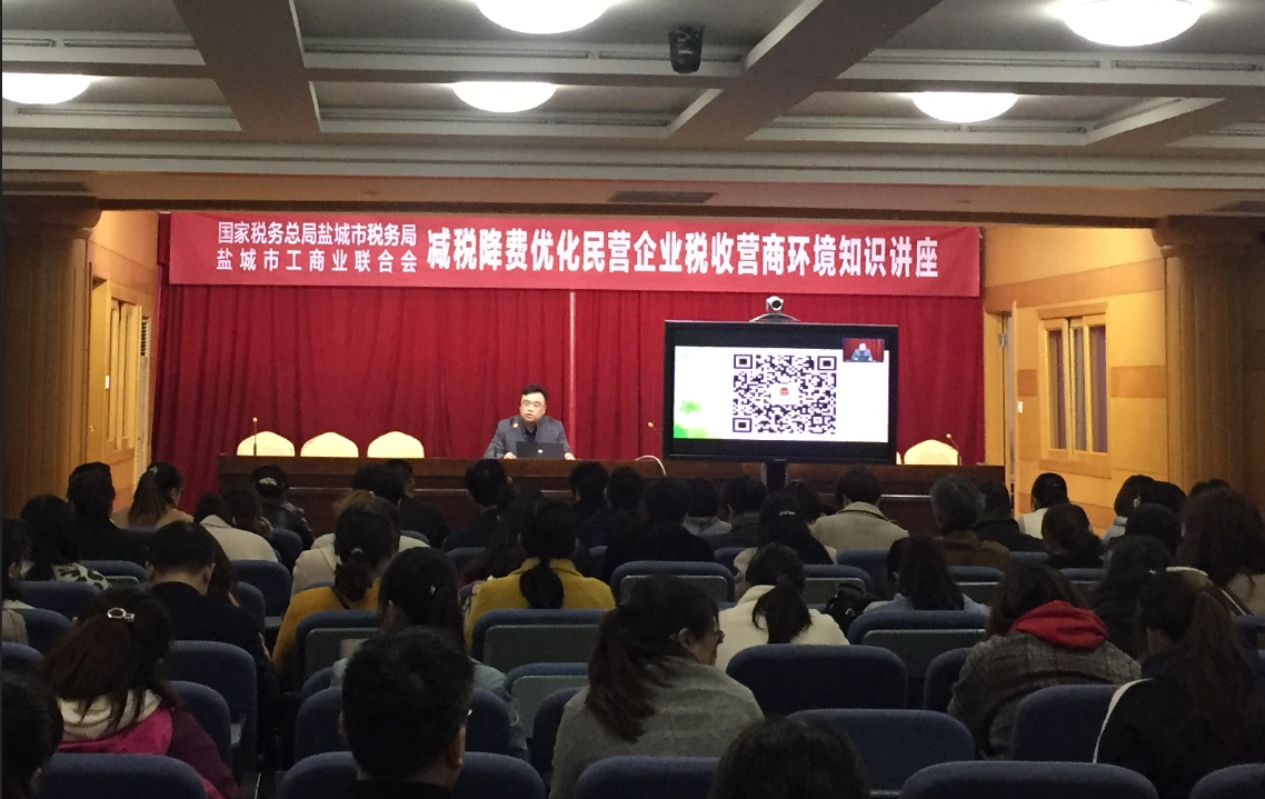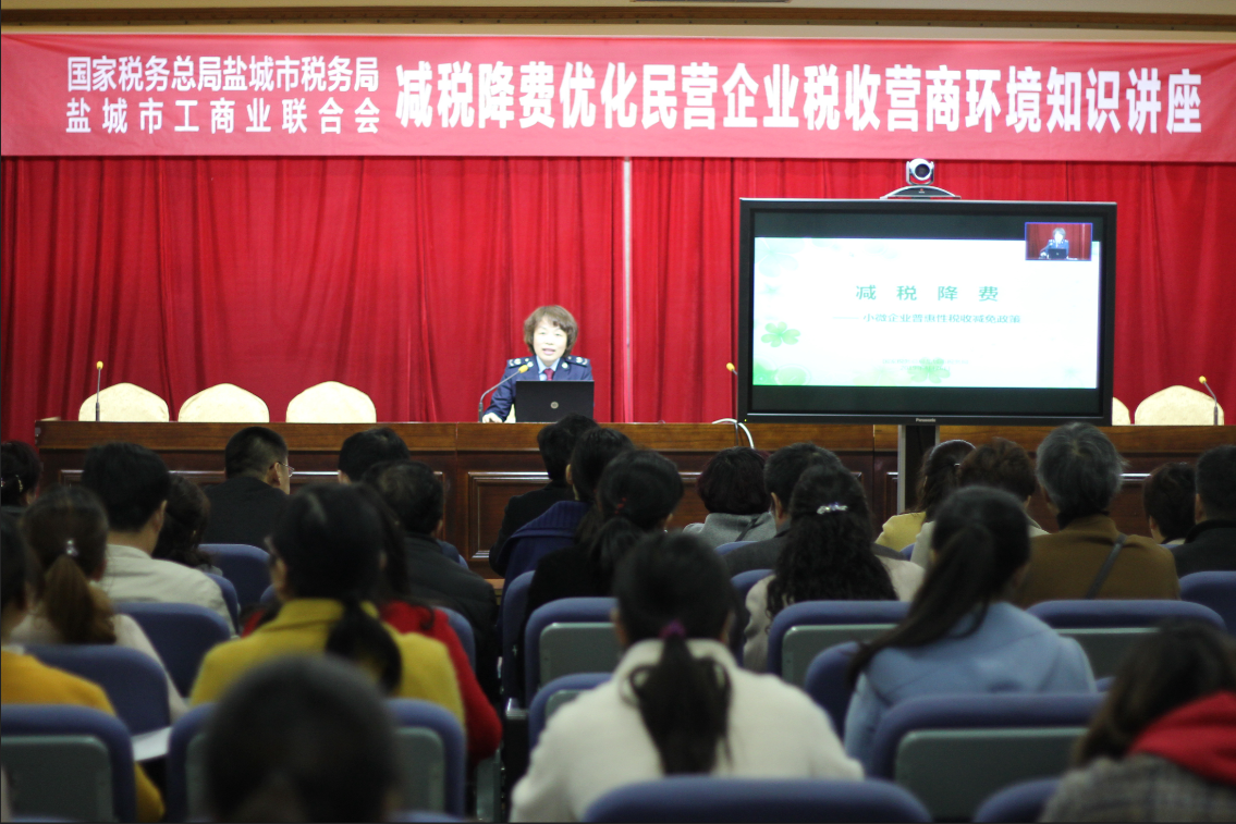 为贯彻落实中央和全省民营企业座谈会精神,更好地落实国家减税降费决策部署,助推盐城市民营企业高质量发展,4月26日,盐城市工商联、国家税务局盐城市税务局联合举办了减税降费优化民营企业税收营商环境知识讲座。本次讲座主要围绕中小微企业税收优惠、增值税新政等当前税收政策热点,共160余名企业代表参加了本次讲座。