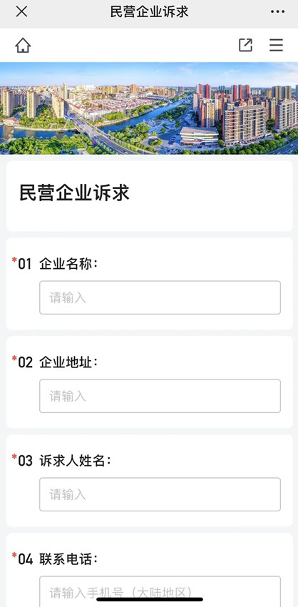 点击【民企驿站】栏目找到相应的诉求平台,