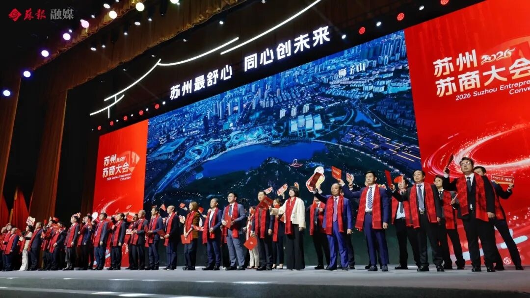 会上,播放了主题片《苏商·苏Shine》,发布了《苏州市重点新兴产业和重点未来产业名单》《苏州市构建一流营商环境行动方案(2026年)》。24位企业家代表上台发布《苏商之光,点亮苏州》倡议书,发出了“胸怀报国志、一心谋发展、守法善经营、先富促共富”的倡议。