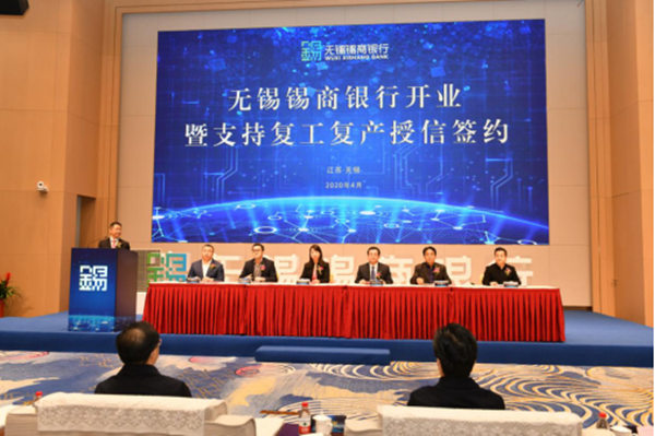 仪式现场,中国银保监会江苏监管局负责人宣读《关于无锡锡商银行股份有限公司开业的批复》,并颁发金融许可证。中国人民银行南京分行负责人和无锡市市长杜小刚分别致辞。随后,在与会领导共同见证下,无锡锡商银行分别与江苏银行、兴业银行南京分行、国联证券、神州数码、华为江苏、数美天下、明略科技、深度好奇等单位达成战略合作意向。同时,为全力支持企业复工复产,无锡锡商银行还与朝阳集团、泰信机械、华精新材、大经供应链、中恒大耀等企业举行授信签约。