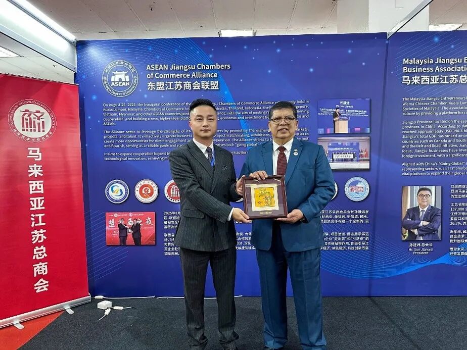 本次大会,马来西亚江苏总商会由总会长孙建炜亲自领队,荣誉会长顾明华、东盟江苏商会联盟秘书长袁兴兵、常务副会长夏斯祥、副会长商旭峰、副秘书长戴志华以及会员企业代表黄葳、李政霖、姚岳、焦东津等出席博览会。