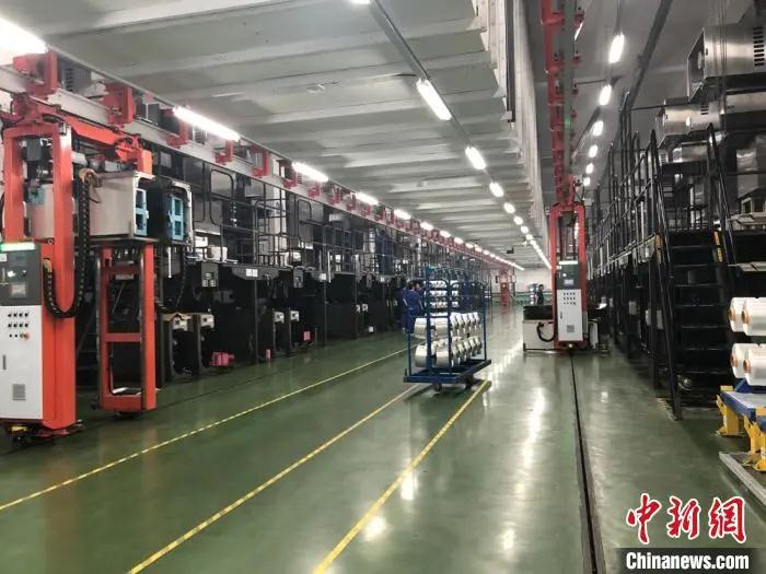 【盛虹智能化纺织车间内,整齐有序。 孙权 摄】