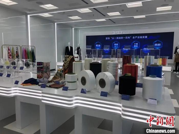 【恒力集团展厅,展示“一滴油到一匹布”的故事。 孙权 摄】