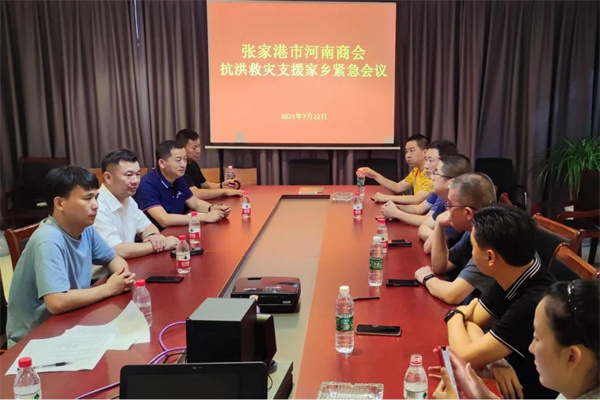 22日下午,张家港市河南商会召开抗洪救灾支援家乡紧急会议,会长张明昌携理事会成员出席会议,秘书长张付良主持会议。会议通报了商会当前捐款募集情况;现场连线了苏州市河南商会会长夏广兵,请示工作开展;并联系了河南省红十字会及物资对接部门,了解当前河南受灾情况及所缺物资情况。经理事会集体商议,达成了首批捐赠的一致意见。