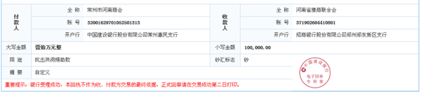7月23日上午,张家港市河南商会通过张家港市慈善总会定向捐赠10万元支持河南抗洪救灾,帮助受灾群众度过难关,后期还将继续关心支持受灾地区的重建进展和需要。