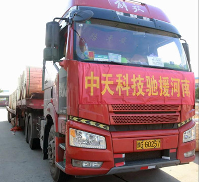 中天科技市场部领导亲自坐镇,时刻与前方保持联系,对抢修恢复灾区通信、电力所需一切物资进行第一时间的对接与发货。22日凌晨已紧急调拨近550公里的光缆火速发往郑州灾区抢救通信设施;生产部立即增设两条河南救灾生产专线,积极配合生产安排,加班加点完成紧急生产与配货,全力保障受灾地区电力、通信物资尽早发货。