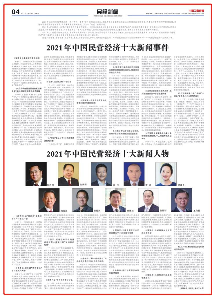 经过广泛收集、全面梳理,历经初选、复选、评委会讨论,中华工商时报评选出2021年中国民营经济十大新闻事件和2021年中国民营经济十大新闻人物。